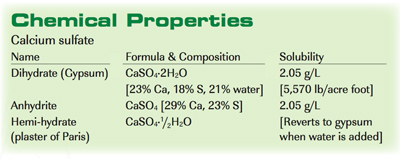 Farmers typically add gypsum to soils either to nourish plants or modify and improve soil properties. Gypsum is somewhat soluble in water, but more than 100 times more soluble than limestone in neutral pH soils. When applied to soil, its solubility depends on several factors, including particle size, soil moisture and soil properties. Gypsum dissolves in water to release Ca²⁺ and SO₄²⁻, with no significant direct impact on soil pH. In contrast, limestone will neutralize acidity in low-pH soils. In regions with acid subsoils, growers sometimes use it as a relatively soluble source of Ca for alleviation of aluminum toxicity.